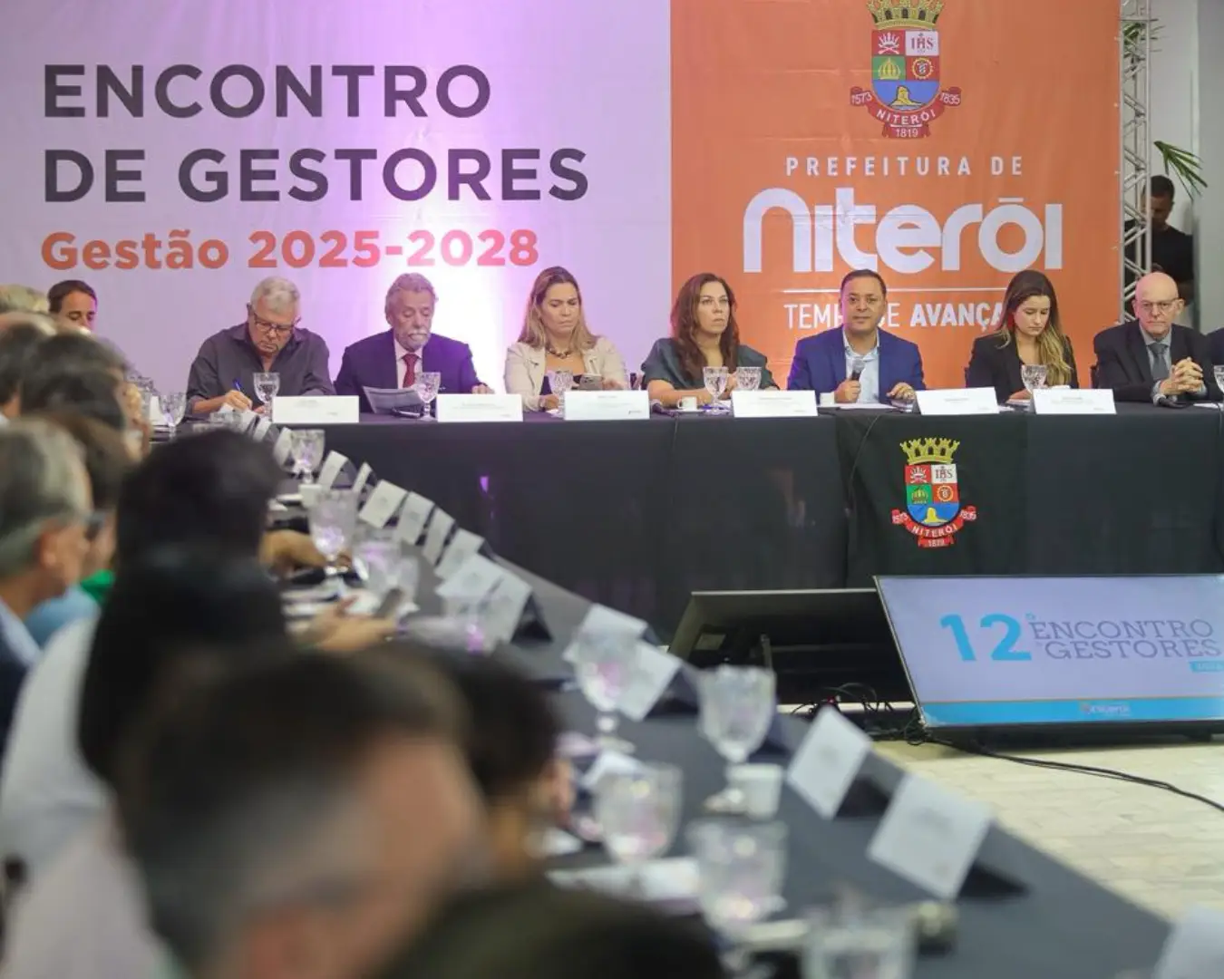 O prefeito de Niterói, Rodrigo Neves, comandou, nesta quarta-feira (11), o 12º Encontro de Gestores da administração municipal. O prefeito reuniu secretários, secretárias e presidentes de empresas municipais para alinhar as metas estabelecidas para 2026. No encontro, Rodrigo Neves também anunciou para o final de março o lançamento do Plano Estratégico Niterói Que Queremos 2050 (NQQ), com objetivos e metas de médio e longo prazo, que foi elaborado com a participação dos moradores da cidade e de vários setores da sociedade.