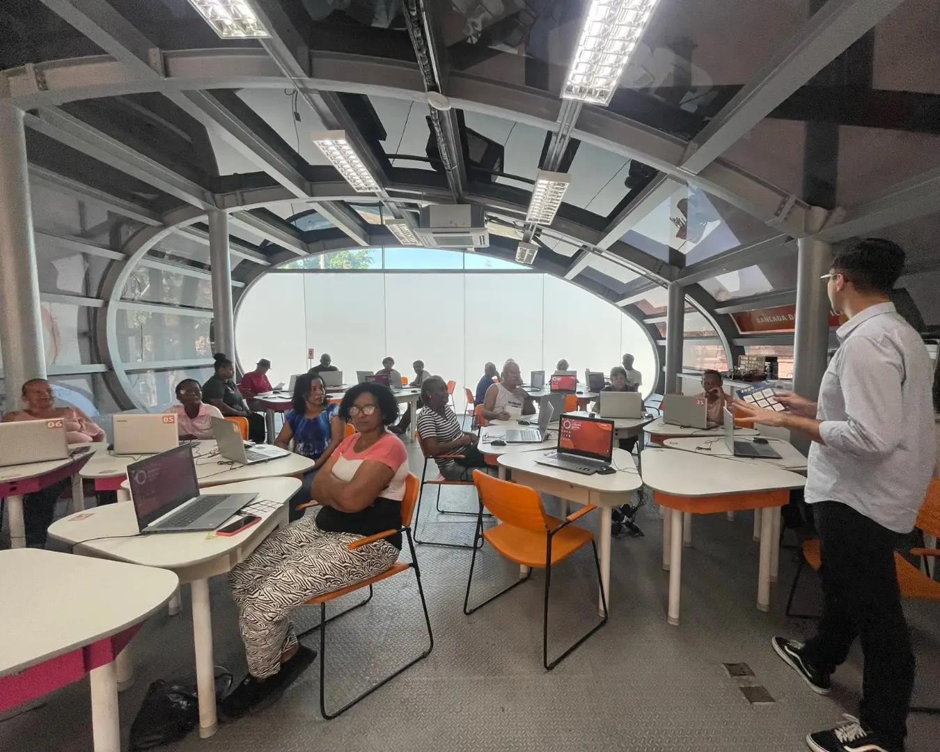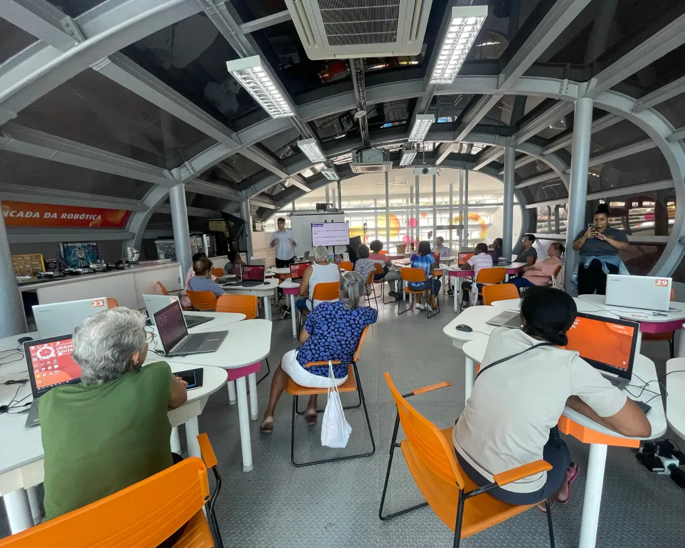 Um dos destaques da aula foi a apresentação do Portal de Serviços de Niterói, onde os participantes puderam aprender como solicitar serviços digitais de forma prática e eficiente. As dinâmicas realizadas durante o curso foram muito bem recebidas e despertaram o interesse dos idosos.